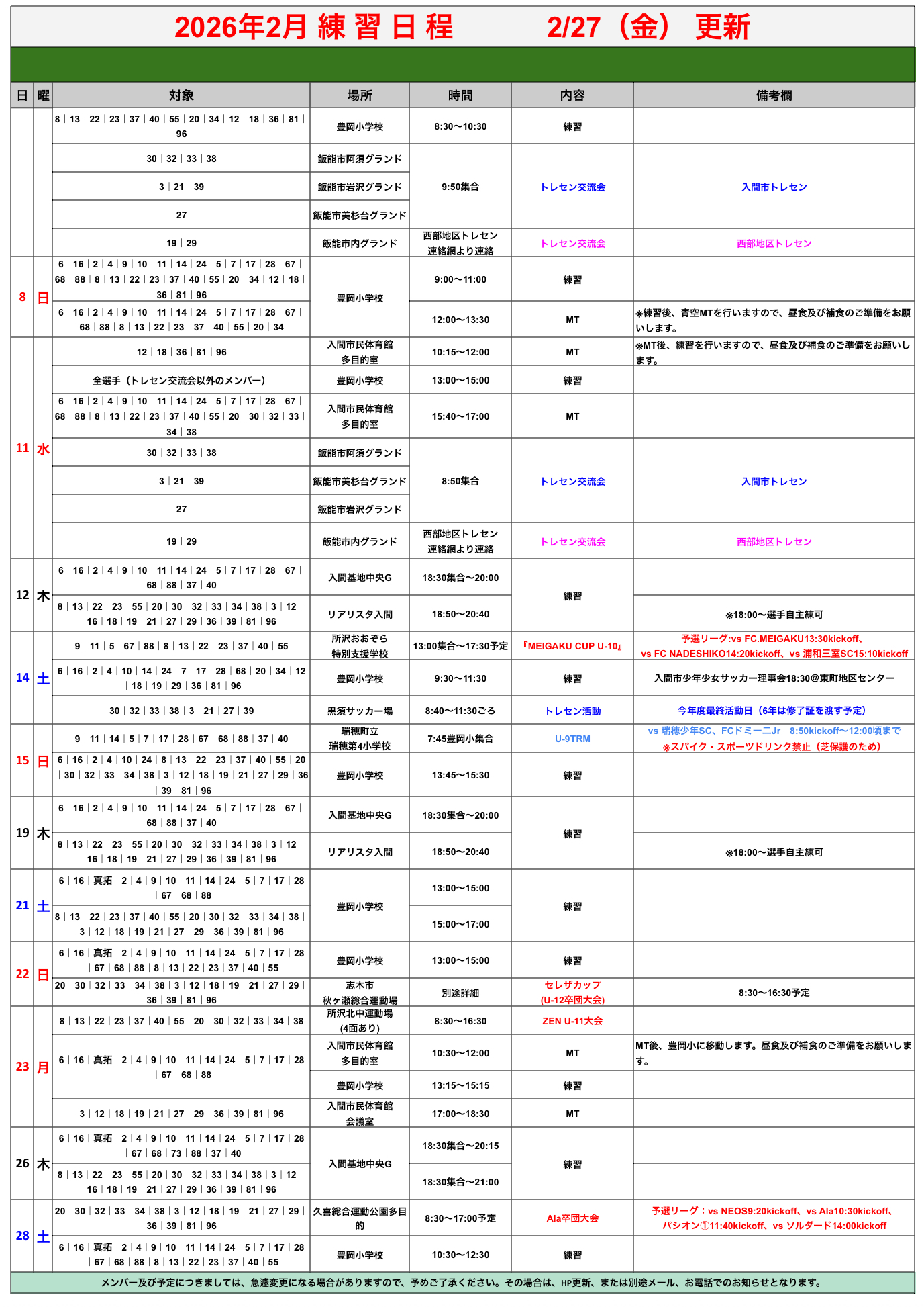 U-12 所属選手・保護者専用